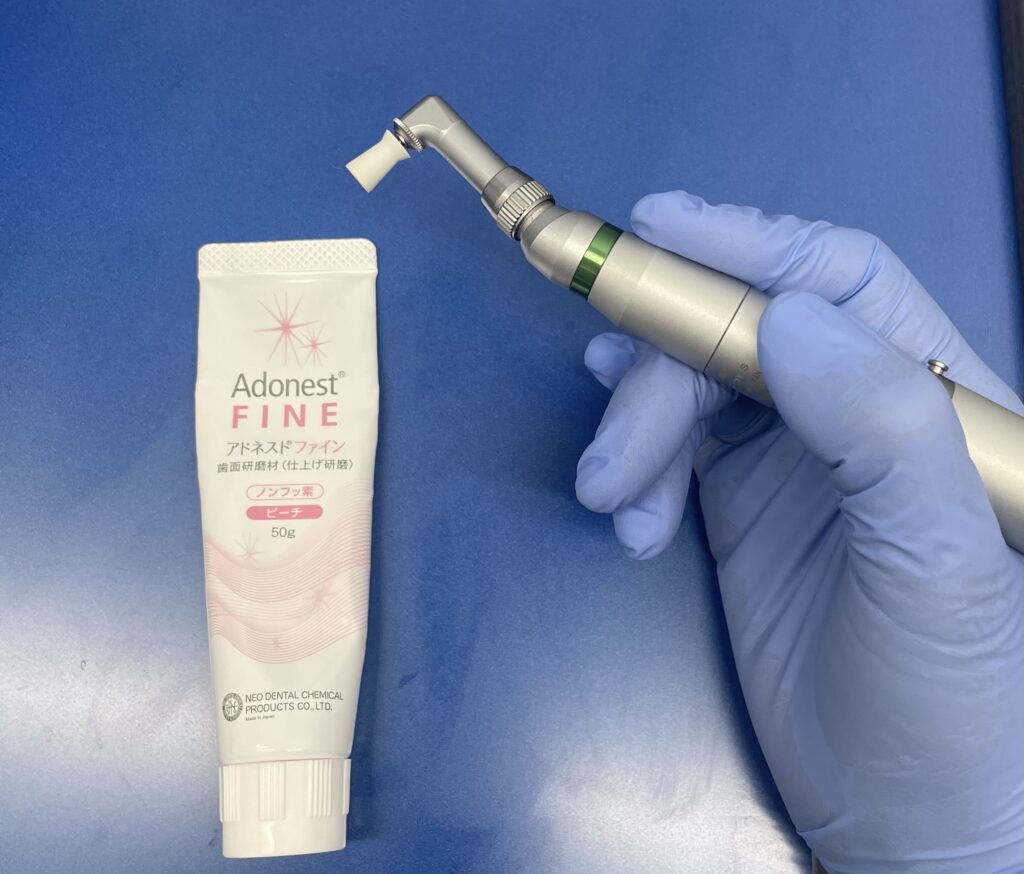 研磨剤とチップを使用し、丁寧に磨くことで歯の表面を滑らかにする効果があり、再び歯垢が付着しにくくなります。
